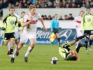 Активен был и российский форвард Павел Погребняк. На 17-й минуте россиянин получил прекрасный пас от Роберто Хильберта, обыграл двух защитников, но умудрился промахнуться с десяти метров. Спустя пару мгновений он же заработал угловой, а на 25-й минуте "волки" все-таки пропустили. Чиприан Марика получил мяч на линии штрафной, выманил голкипера Андре Ленца из ворот и сделал филигранный навес на Хильберта, который в касание переправил мяч в сетку – 1:0.