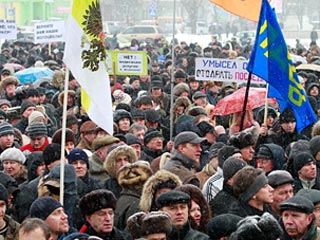 Протестующие недовольны резким ростом госпошлин при постановке автомобилей на учет в ГИБДД, требуют отмены заградительных таможенных пошлин на иномарки и выражают протест против повышения тарифов ЖКХ.