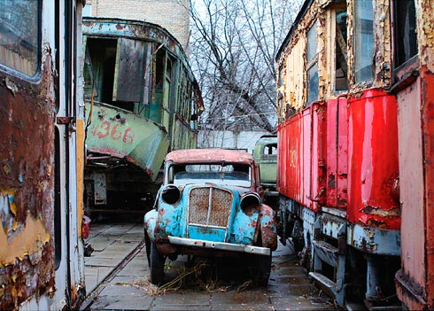 Хлам трамвайный. Общественный транспорт уходит незаметно. Только старые киноленты напоминают сегодня о смешных горбатых автобусах, элегантно-угловатых трамваях, круглоголовых голубых троллейбусах, бегавших по улицам наших городов. Но есть места, где эти приметы ушедших эпох бережно хранятся