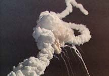 Шаттл "Челленджер" (Challenger, "Бросающий вызов") - многоразовый транспортный космический корабль NASA, переданный в эксплуатацию в июле 1982 года. Изначально он предназначался только для испытательных целей, но затем был переоборудован и подготовлен для космических полетов. Первый полет Challenger совершил 4 апреля 1983 года, затем было еще восемь успешных вылетов. Десятый был запланирован на утро 28 января 1986 года, затем запуск перенесли на два часа дня из-за того, что были найдены мелкие поломки, которые устраняли инженеры. За стартом "челнока" наблюдали миллионы зрителей по всему миру. На 73-й секунде полета, на высоте 14 километров произошел мощнейший взрыв, и второй американский шаттл мгновенно превратился в облако обломков. Погиб весь экипаж - семь человек, включая и первого астронавта-непрофессионала - бывшую учительницу Кристу Маколифф.
