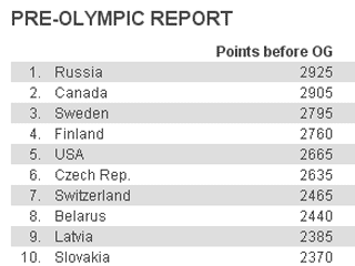 В групповом турнире Олимпиады-2010 россияне избежали соперничества в этими командами. Они проведут свои стартовые матчи против Чехии (2635), Словакии (2370) и Латвии (2385).