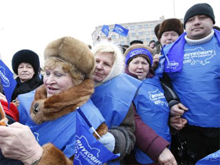 Собравшиеся у здания ЦИК люди обещают, что к вечеру здесь будет более 10 тысяч сторонников Партии регионов.