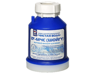 Как выяснила газета "Ведомости", холдинг "Золотая формула" выпустила бытовой напорный фильтр за 1200 рублей под названием "ZF-МЧС (Шойгу)". На этикетке напечатаны логотип "Единой России" и название партийного проекта - "Чистая вода". Фильтр предназначен для удаления из питьевой воды взвешенных частиц, мутности, цветности, металлов, жиров, нефти и нефтепродуктов.