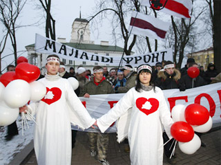 Представители оппозиционных молодежных партий провели в Минске несанкционированную акцию, посвященную Дню Святого Валентина, передает корреспондент "Интерфакса" в воскресенье вечером.