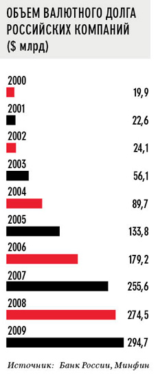Как бы то ни было, российские компании продолжают испытывать острую нужду в капитале: ведь долг еще и обслуживать надо, то есть проценты по нему платить. В 2008 и 2009 годах отечественные корпорации принялись договариваться с кредиторами об отсрочках и реструктуризациях, благо кризис всех сделал сговорчивыми. Во втором полугодии 2009 года российские компании должны были выплатить в счет процентов и погашений основного долга около $49 млрд. Сделки были непубличными, однако совокупный корпоративный долг по итогам полугодия не только не сократился, но даже вырос: компании умудрились нарастить его на $6 млрд. С другой стороны, отсутствие разгневанных кредиторов с судебными исками говорит о том, что какие-то договоренности все-таки были достигнуты.