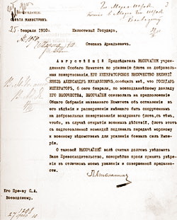 6-го февраля (19 февраля по новому стилю) 1910 года Его Императорскому Величеству Государю Императору Николаю II благоугодно было всемилостивейши соизволить: