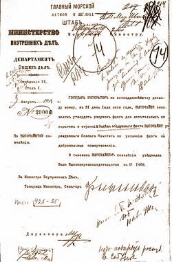 Высочайшее соизволение было подписано собственноручно Государем Императором, синим карандашом.