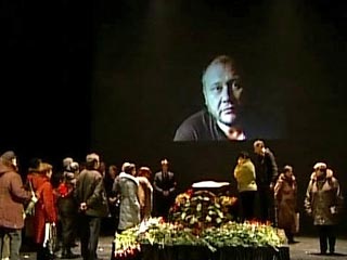 "Мы - те, кто начинал наш театр, мы пришли сегодня проститься с нашим Юрой, - сказал режиссер. - Мы встретились 22 года назад в ГИТИСе и вместе строили труппу. Спасибо, что сегодня вместе с нами столько людей. Театр принадлежит актеру, а актер принадлежит зрителям. Поэтому я хочу, чтобы все присутствовавшие увидели лицо Юры и запомнили его навсегда". Артисты приподняли гроб, и зал стоя замер в молчании почти на 10 минут.