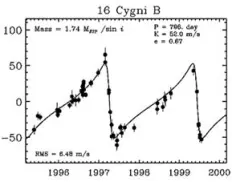 Но общественность поверила в открытие далеко не сразу. Уж очень неожиданным был результат. Он означал, что вокруг звезды, похожей на Солнце, на расстоянии, в 20 раз ближе, чем Земля к Солнцу, вращается огромная планета, сравнимая по массе с Юпитером. Оттуда там взяться Юпитеру! Ведь звезда на таком расстоянии от себя испаряет всю протопланететную пыль, и там просто ничего не может образоваться! Многие выдвинули предположение, что это — «дыхание» звезды, она сжимается и расширяется с периодом 4,2 дня. Против этого были выдвинуты свои доводы. Споры были жаркими и продолжались недолго. Появились новые открытия, перешедшие вскоре в разряд серийных. Разнообразие быстро росло, и вскоре пришла уверенность в том, что колебания лучевой скорости вызваны именно планетами.. По словам того же Марси, когда видишь синусоиду — всегда остаются какие-то сомнения, может, действительно звезда дышит. Но когда они обнаружили асимметричную кривую, которая прекрасно подгонялась движением по сильно вытянутой кеплеровской орбите, все сомнения отпали.