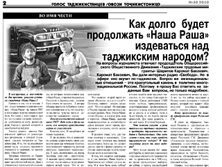Ранее Шарипов уже дал интервью радио "Свобода" и газете "Голос Таджикистанцев", где назвал авторов шоу циниками. "Они извлекают прибыль из демонстрации резервации, в которой туземцами сделали мигрантов из Таджикистана, - заявил активист. - И то, что на российском рынке труда создалось предвзятое отношение к таджикам, во многом вина "Нашей Раши".