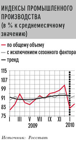 В отсутствие официальных данных аналитические центры вынуждены заниматься самостоятельными расчетами, используя собственные источники — в основном опросы предприятий. Результаты поражают воображение. Скажем, Центр макроэкономического анализа и краткосрочного прогнозирования насчитал рост промышленности в феврале 2010-го по отношению к февралю 2009-го аж на 10,1%. Если сравнить со скромными данными Росстата, точность получается, как в поговорке: плюс-минус лапоть.