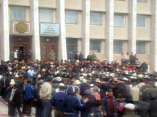Ранее сайт "Фергана.Ру" сообщил, что во вторник днем сторонники оппозиции в количестве более 1500 человек полностью захватили здание администрации Таласской области. Они объявили об "избрании" альтернативного губернатора области, им стал Шералы Абдылдаев, а его заместителем объявлена Койсун Курманалиева, уволенная с этой должности при действующем губернаторе области. В то же время агентство "Интерфакс" передало, что оппозиционеры избрали губернатором области Койсун Курманалиеву, местного лидера оппозиционной партии "Ата-Мекен".