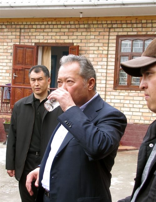 Накануне выхода Бакиева из подполья, The New Times нашел свергнутого президента в его родовом селе Тейт, куда он приехал на похороны родственницы. Во дворе своего дома президент сначала на камеры кинематографистов из Altai Cinema Group записал краткое обращение к народу на киргизском языке, а затем ответил на вопросы нескольких журналистов, среди которых оказался и корреспондент The New Times.