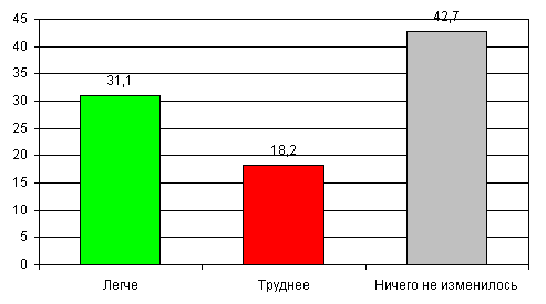 Респонденты включили в «ухудшение» задержку и сокращение зарплат, увеличение числа и размеров штрафов (за опоздание, прогул, мелкие нарушения и т.д.), сокращение социальных льгот. Также был отмечен рост оскорблений и усиление ксенофобии.