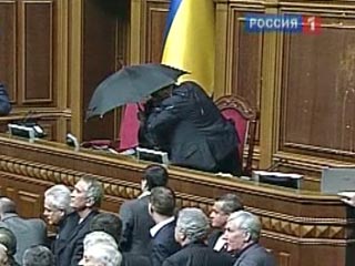 Внутри здания парламента тоже все было неспокойно. Спикера Владимира Литвина, когда он пытался пройти на трибуну, начали забрасывать яйцами. Председатель ВР вынужден был начать пленарное заседание под прикрытием зонтиков, которые держали его охранники. Впрочем, одно из яиц все-таки попало ему в глаз, сообщает NEWSru.ua.