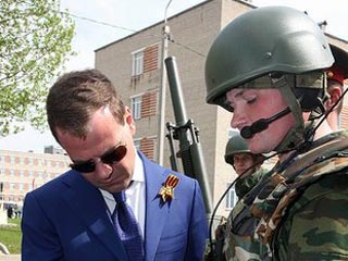"Когда у нас будет возможность домой ездить?" - спросил Медведев у Сердюкова. "Планируем, что в течение двух-трех месяцев мы выйдем на этот режим. Соответственно, после принятия присяги призывники этой бригады смогут (ездить домой на выходные). Начнем внедрять это в экспериментальной бригаде", - сообщил министр обороны.