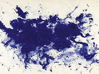 Антропометриями Кляйн, провозгласивший девиз "За цвет! Против линии и рисунка!", называл картины, созданные при помощи отпечатков человеческого тела на полотне. Работа над такими холстами напоминала, скорее, перформанс - обнаженные женщины наносили на себя краску, затем прижимаясь к белому холсту.