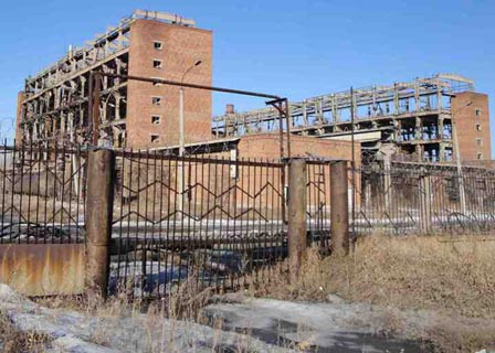 Рис. 43. Завод пластмасс, недостроенные и простоявшие больше 12 лет пустыми цеха