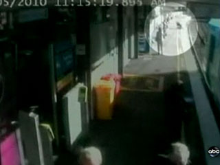 Инцидент зафиксировала видеокамера над платформой. Запись показали некоторые телеканалы, также она была размещена на портале YouTube. Вот, к примеру, сюжет, показанный в программе America this morning на телеканале ABC: