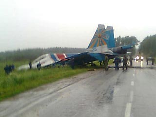 В Подмосковье произошел очередной инцидент с самолетом пилотажной группы "Русские витязи", но на сей раз, к счастью, обошлось без жертв. Вечером 10 июня при посадке истребитель Су-27 выкатился за пределы взлетно-посадочной полосы, сломал переднюю стойку и уткнулся в землю. В результате он получил повреждение носовой части. Экипаж не пострадал.