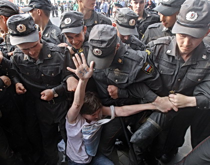 Ведь в сущности совершенно неважно, запретит власть собираться на Маяковке всем-всем или только несогласным: последние как собирались, так и будут собираться, запретами их, мягко говоря, не удивишь. А вот прокремлевская молодежь пострадает, поскольку в большинстве своем выходит на акции не по зову сердца, а за конкретные бонусы (именно поэтому предложение Венедиктова вызвало у них протест). Важно и то, что новость с Венедиктовым стала еще одним звеном в непрерывающейся информационной цепи, созданной и инспирированной отнюдь не несогласными. В годы заката классических «Маршей несогласных», как и в период зарождения «Стратегии-31» создание насыщенного информационного поля вокруг акций было довольно сложной задачей, которая ложилась на плечи пресс-служб различных оппозиционных организаций. Сегодня же эти усилия практически не нужны: Триумфальная звучит в новостных лентах и так. Теперь далеко не все помнят, что год назад идею «Стратегии-31» поддерживало совсем мало людей, а уж о присутствии випов на акциях можно было только мечтать. Тогда 200 несогласных, вышедших на площадь, казались кучкой отчаянных смельчаков, чью смелость пришло зафиксировать едва ли не большее число журналистов, а уж про 2000 вооруженных людей и говорить не приходится: было страшно. Сегодня 2000 омоновцев и милицейских против примерно такого же количества митингующих кажется уже паритетной силой, если, конечно, рассматривать Триумфальную как место символического (а иногда и не очень) боя. Теперь, чтобы добиться того же эффекта, что и год назад, власти надо вывести на Маяковку 20 тысяч милиционеров, что, в общем, малореально. Теперь, по признанию многих участников, выходить не страшно, а весело (вопреки всем зверствам милиции).