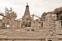 Сейчас мы получаем результат этого «благоустройства»: в двух шагах от «ПоЖАРки» возводится каменное здание на бетонном фундаменте, с тщательно выложенными известняком стенами. В сторону берега Псковы и ее устья, на самом высоком месте, на пригорке, жестко проведена по рельефу граница участка, здесь предполагается построить павильоны-беседки: конструкции одной из них уже установлены.