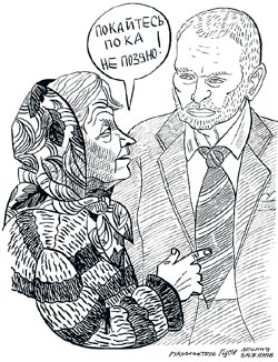 Первым выступал прокурор Алексей Никифоров: «Свидетели защиты говорили: «Все что не запрещено, то разрешено». Но сегодня мы будем оскорблять верующих, завтра — жертв сталинских репрессий, жертв фашизма, а потом участников вооруженных конфликтов, — возмущался он. — Вот, например, картина Вячеслава Сысоева «Свет против тьмы».* * Картина написана в 1985–1986 гг. Изображает гонения на Русскую православную церковь в 20–30-е годы XX века. В обвинении не фигурирует. Это так называемая игра для юного атеиста, где предлагается вырезать священников, храм, взрывчатку, огэпэушников, которые этот храм взрывают. Но предложите вместо храма изобразить Черкизовский рынок, например, фигурки гастарбайтеров, а вокруг люди с символикой радикальных националистических группировок. Какие чувства это вызовет?» Бабушки в зале зашуршали бумажными иконками, поднимая их вверх в знак одобрения, а подсудимый Ерофеев позволил себе реплику: «За время процесса прокурор у нас стал художником». Шутка не смутила гособвинителя и он добрался до главного: «С учетом общественной опасности содеянного и в связи с тем, что содеянное является плевком в сторону униженной и оскорбленной части людей, предлагаю приговорить подсудимых к трем годам колонии-поселения». Православная публика зааплодировала.