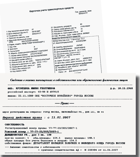 Лилия Георгиевна Кузнецова, мать подполковника, приобрела машину в кредит, который взяла в Альфа-Банке на три года. Согласно банковским документам, совокупный доход семьи родителей Кузнецова в месяц составляет $4500. Это позволило им приобрести три смежных земельных участка в деревне Пушкино Ногинского района Московской области. По данным Файерстоуна, общая рыночная стоимость 47 соток земли составляет $198 тыс., то есть копить на всю купленную недвижимость семья должна была лет шестьдесят, а если бы это был подарок от сына, то подполковник при его официальном доходе должен был бы собирать на все свои приобретения, включая машины, квартиры, землю, много больше отпущенной смертному человеку жизни — 295 лет.