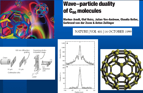 Михаил Кацнельсон (фото Наташи Четвериковой) То же самое получается, если вы пропускаете через две щели электроны. Что происходит? Когда поток электронов небольшой, когда их штуки, видно, что они попадают в определенные места экрана. Дальше вы увеличиваете поток электронов, точек становится все больше и вдруг внезапно у вас вырисовывается типичная интерференционная картина, которая означает, что электрон есть волна. Это совершенно поразительная вещь. Это то, как мир описывает современная квантовая теория. Здесь есть несколько очень важных моментов. Прежде всего, важно подчеркнуть, что квантовая механика принципиально отказывается предсказывать индивидуальные события. Она говорит, что, когда у меня появились первые 8 пятнышек, я принципиально не могу сказать, где эти пятнышки появятся. Запрещено задавать природе такие вопросы. Понятно, что это не всем нравится. Но очень важно, что индивидуальные события в микромире принципиально не могут быть предсказаны. В то же время, когда у нас имеется много таких событий, усредненные характеристики могут быть предсказаны со сколь угодно большой точностью. Конечно, это абсолютно радикальный разрыв с предыдущей картиной мира, потому что то, что в принципе физика может прослеживать причинно-следственные связи, — это под сомнение не ставилось. Электрон маленький — и немедленно возник вопрос о пределах применимости квантовой механики: не связано ли это просто с размерами, нет ли такого, что маленькие частички ведут себя как волны, а большие себя так не ведут? Ответ: и да, и нет. Для больших частиц длина ассоциированной волны становится все меньше. Но принципиальных проблем нет. Эта картинка взята из недавней работы, где опыт с двумя щелями был проведен для молекул С60.