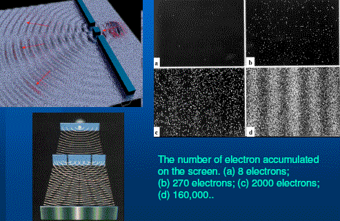 Волны накладываются так, что в одних местах наблюдается усиление, а в других — они друг друга взаимно гасят. Основное утверждение корпускулярно-волнового дуализма состоит в том, что с любой материальной сущностью ассоциирована некая волна. И нельзя сказать, что, например, электрон — это частица, или что это волна. И про свет нельзя сказать, что это поток частиц или волна. Это ни то, ни другое, но нечто. Что на языке нашего мира может быть описано в некоторых случаях как поток частиц, в некоторых — как волна. Это реальный эксперимент.