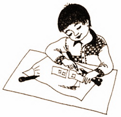 Да, видишь, лужа. Дяде нужны сапоги, - обувь немедленно прорисовывается к спичкообразным ножкам.