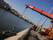 Иномарка, протаранив ограждение, упала в Москву-реку. У пассажира нашли поддельные документы