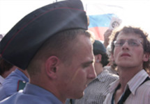 Милиция не стала задерживать собравшихся у ОВД "Тверское", но оттеснила их на противоположную сторону улицы. Оппозиционеры скандируют "Позор!", "Свободу!" и другие лозунги.