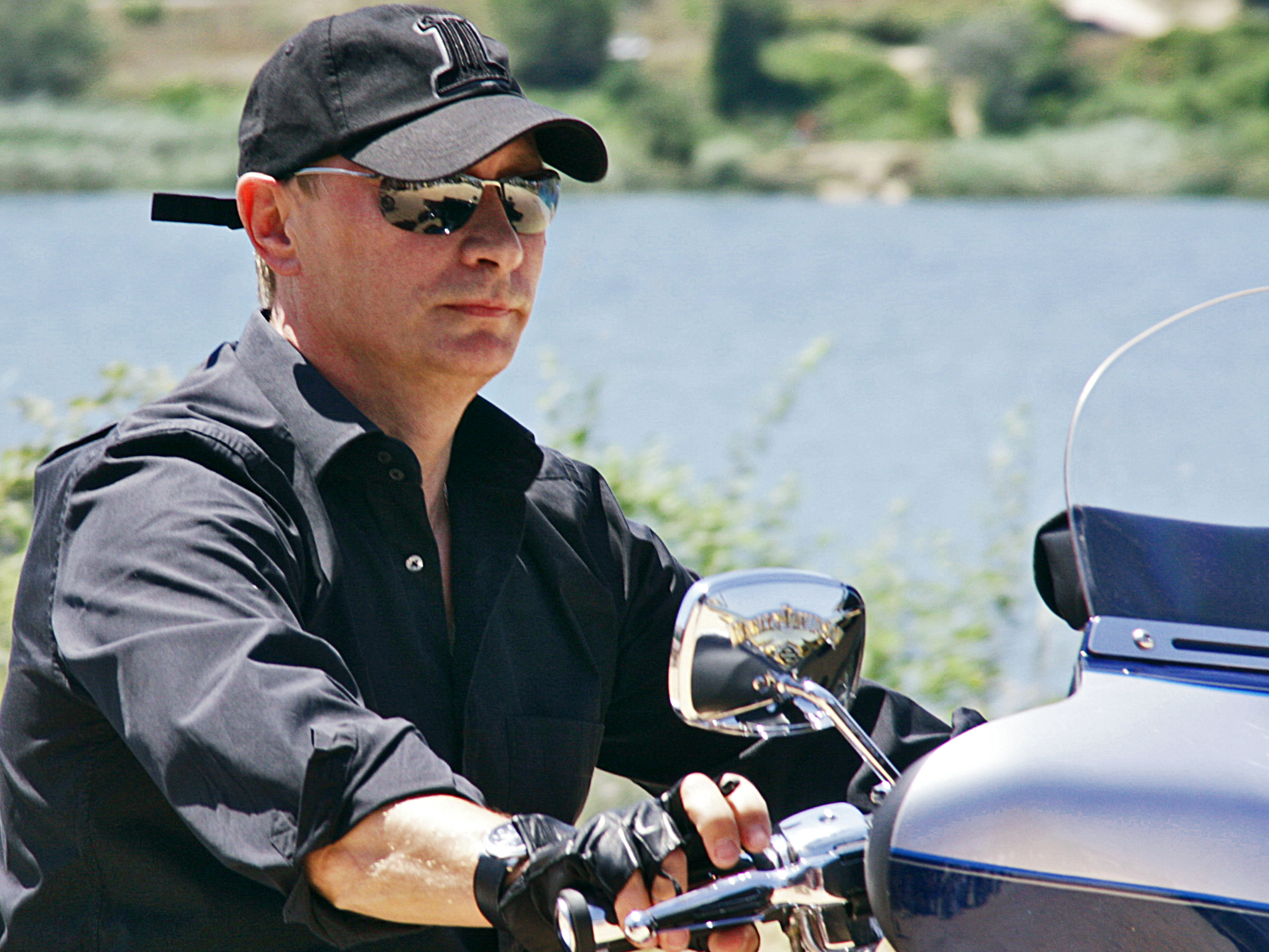 Путин был в черной рубашке, черных джинсах, в черных перчатках, бейсболке и темных очках, за что впоследствии за ним байкерских форумах твердо закрепился ник "Абадонна"