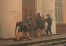Нападение на здание Химкинской администрации произошло 28 июля. Молодые люди, скрывая лица платками и масками, закидали здание камнями, бутылками и расписали лозунгами стены. Сам погром длился не более трех минут. По данным милиции, в акции участвовало 90 человек, по свидетельству очевидцев – несколько сотен. На месте никто из участников акции задержан не был (