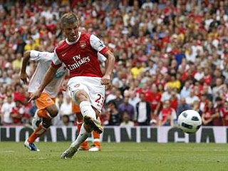 Напомним, что в первом туре премьер-лиги "Арсенал" сыграл вничью на выезде с "Ливерпулем" (1:1), а "Блэкпул" также в гостях разгромил "Уиган" (4:0).