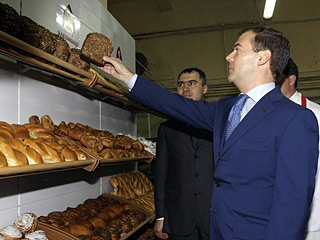 Медведева интересовал рост цен, сообщает РИА "Новости". Одна из покупательниц сообщила ему, что цены немного растут. Другая с ней не согласилась - по ее словам, роста цен нет.