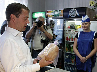 Российский президент Дмитрий Медведев призывает глав регионов мониторить цены на продукты, систематически посещая продуктовые магазины и рынки, и наказывать тех, кто причастен к спекуляциям, передает ИТАР-ТАСС. Провинившимися продавцами должны заниматься антимонопольные службы и Генпрокуратура.