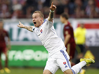 Гости с первых же минут принялись добросовестно играть от обороны и дождались ошибки соперника на 27-й минуте матча. Первый же удар в створ ворот Игоря Акинфеева привел к голу. Голкипер нашей сборной после неуверенной скидки Василия Березуцкого допустил непростительную ошибку, выбив мяч точно на ногу набегавшему из глубины поля Мирославу Стоху. Полузащитник гостей пробил точно в дальний угол.