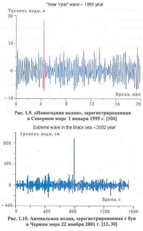В течение многих лет ученые не верили морякам, которые говорили, что иногда бывает так, что в море возникает совершенно ниоткуда огромная волна, она ударяет по судну, и непонятно, что с ней делать, потому что время ее развития составляет несколько минут, десяток периодов волны. Морякам не особенно верили. Но со временем начали строить нефтяные платформы для того, чтобы бурить морское дно и добывать оттуда нефть, и, естественно, океанологи попросили строителей на каждую платформу поставить прибор для измерения уровня поверхности моря.