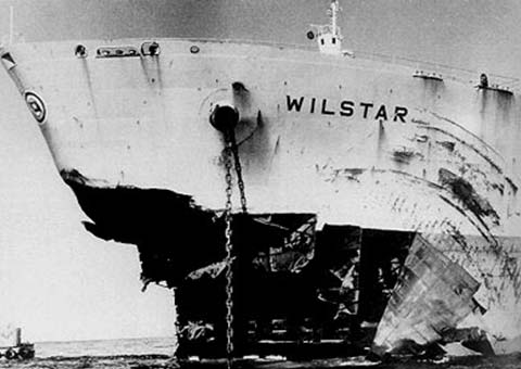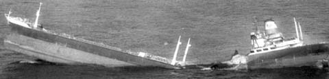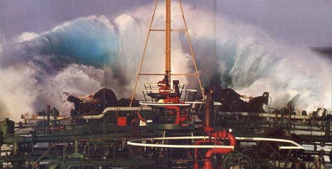 Здесь волна-убийца ударила в корпус корабля. А вот результат другого события: волна прошла под танкером и подняла его. В тот момент, когда корабль был поднят, он опирался на одну точку. Танкер на это не рассчитан и переломился пополам под собственным весом.