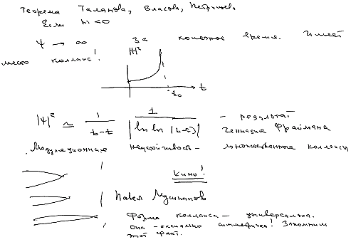 Особенность уходит в бесконечность каким-то образом, но каким? Оказалось, труднейшая задача. Очень долго с ней возились. У меня был единственный в жизни случай, когда я написал и послал в журнал неправильную статью, где была модель этого поведения. К счастью, я сам обнаружил, что она неправильная и забрал статью. Она уже была набрана, у меня потом были неприятности с редакцией журнала: они требовали с меня штраф, но обошлось частичной потерей репутации.