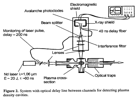 Здесь пучком возбуждается плазма, сверху она просвечивается лазером, и вот — ученые видят образования каверн, в которых как раз и заперто излучение. Эта работа достаточно широко известна в мире.