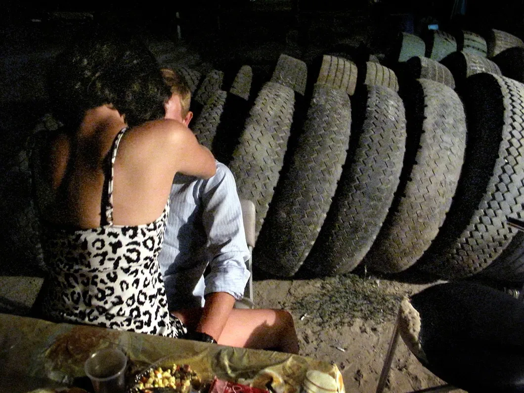 Света наклеивает накладные ресницы, густо мажет губы перламутром. Девочки подметают в вагончиках, меняют постельное белье, выносят стол и стулья из вагончика, ставят на землю. Вытаскивают приемник, колонки: «Русское радио», все будет хорошо!». На столе — арбуз и дыня. Их тут же покупает семья с детьми, проезжающая по трассе. Света кладет новые.