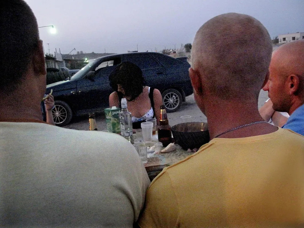 5.00. Из машины (как только поместились?) вылезают шестеро парней: бритые, накачанные — настоящие призраки из 90-х. «Поселковые приехали, — говорит Света вполголоса. — В умате. Синьки накидаются — и сюда, ага».