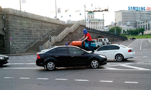 Леонид Николаев выразил протест против «мигалок», пробежав по крыше автомобиля ФСО с синим ведром на голове