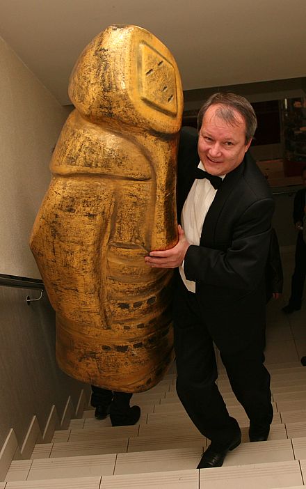 Президент "Флаэртианы" Павел Печенкин несет Золотого Нанука. фото Наташи Четвериковой