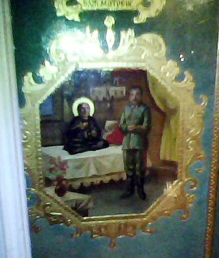 По легенде, "матушка Матрона" имела доверительные беседы со Сталиным, а осенью 1941 года приняла его, очень озабоченного положением в Москве, и успокоила, сказав: "Ты один останешься в городе. Всех отправляй, а город не сдавай. И не сдашь". Впрочем, церковь отрицает сам факт общения Матроны с вождем. Благочинный храмов Центрального округа отец Владимир сказал "МК", что "видимо, кто-то нарисовал Сталина, основываясь на слухах, не зная истинного положения вещей". У Покровского монастыря, где покоятся мощи святой Матроны, много иконописцев, отметил он.