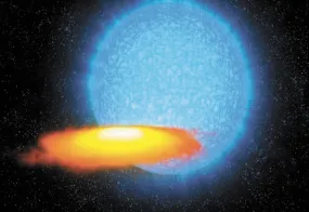 К своей звезде-соседке черная дыра находится столь близко, что внешние звездные слои оказываются в зоне действия гравитации черной дыры (заходят в полость Роша, относящуюся к черной дыре) и выпадают на нее, или, как говорят астрономы, аккрецируют. Это также не способствует нормальному свечению «обкрадываемого» светила. А деформация, которую при этом испытывает звездный шар, приводит к тому, что температура и светимость звезды серьезно различаются в разных участках ее фотосферы. Этот эффект в сочетании с наклоном системы по отношению к земным наблюдателям и приводит к тому, что мы наблюдаем в основном тусклые экваториальные регионы звезды.