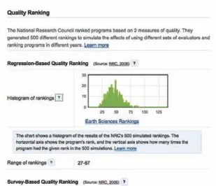 Разработчики использовали регрессивный анализ для определения удельного веса тех параметров, которые оценивали опрашиваемые сотрудники (faculty member, т.е. те, кто имеет постоянную работу, плюс студенты), разбросали эти параметры по 20 категориям, а потом представили на наше рассмотрение в том виде, в котором, собственно, и начинали — в гауссовском распределении. То есть мы должны сами решить, что наиболее вероятно в той картине, которая нам дана. Только вот само распределение вы не увидите, если не нажмете еще одну кнопочку, уже прямо ведущую на страницу с выбранной вами программой.